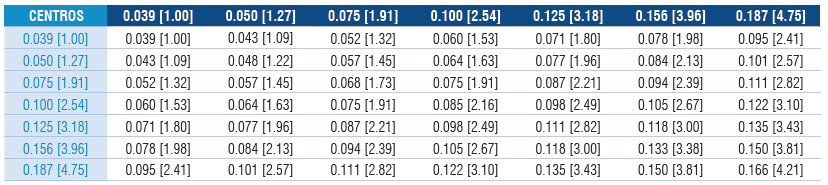 Las siguientes graficas detallan el espacio mínimo recomendable de centro-a-centro para bases convencionales de QA y sondas de terminación. Nota: Sondas con cabeza pudieran requerir mas espacio dependiendo en su diámetro.
