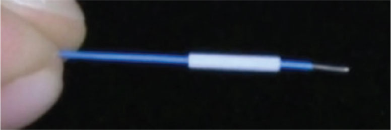 Corte y pele una punta del alambre. Una longitud mínima de 0.625 [16] lograra las seis o siete vueltas recomendadas. Para centros de 50 mil o mas pequeños, vea instrucciones adicionales de aislamiento.